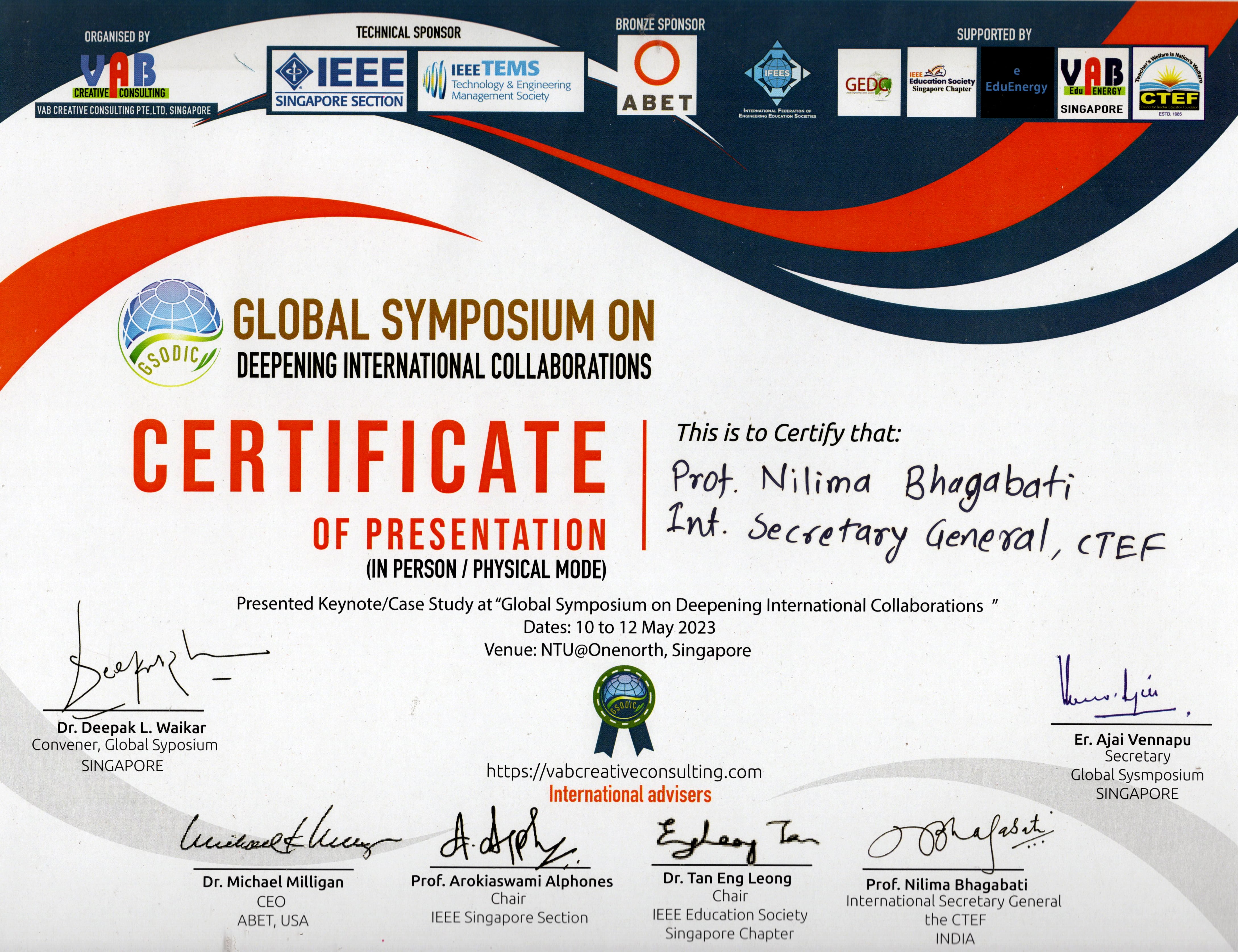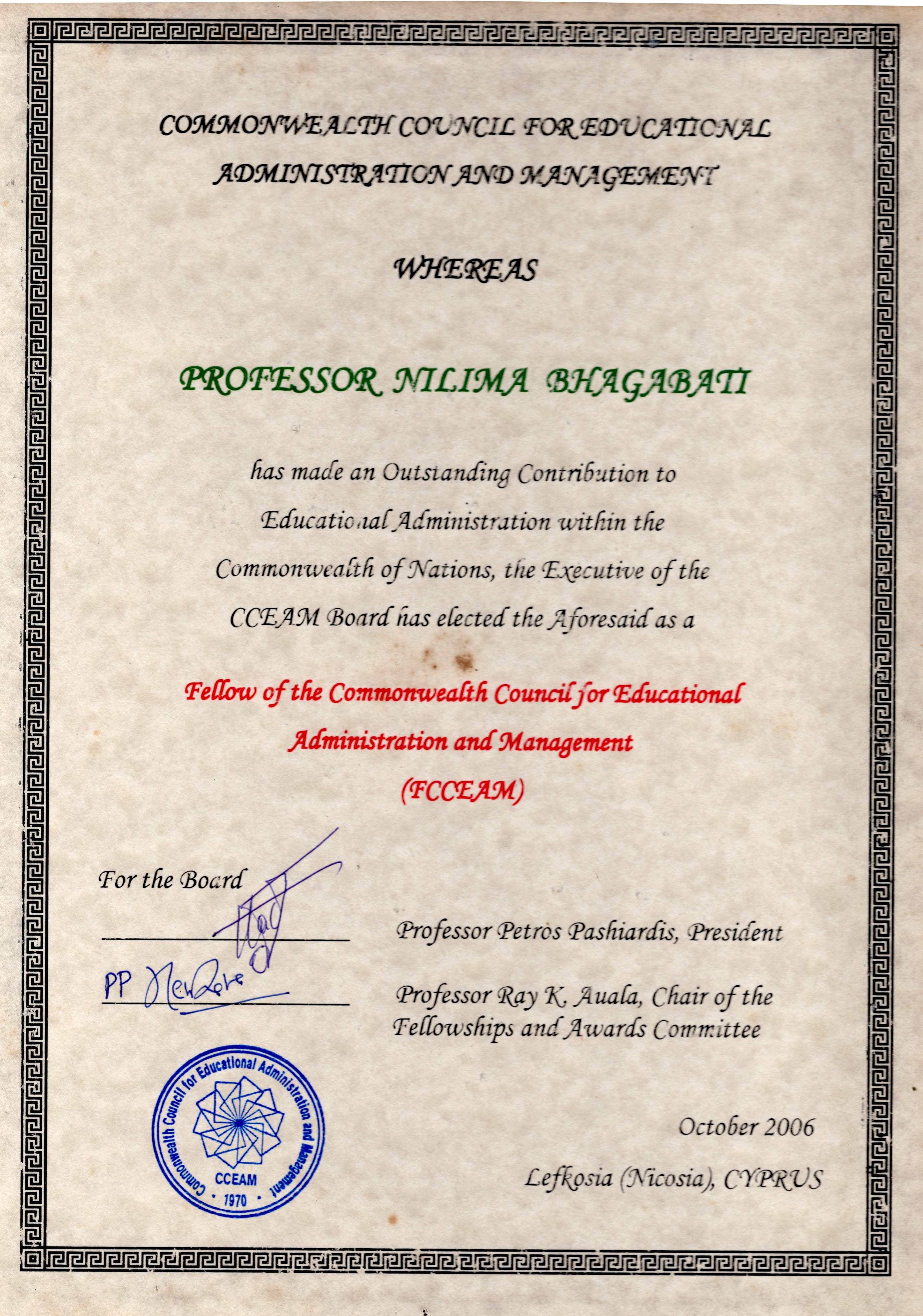 Conferred the title of “Fellow” (FCCEAM) by CCEAM at the Biannual Conference 2006 in Cyprus, in recognition of international contributions to Education and Leadership.